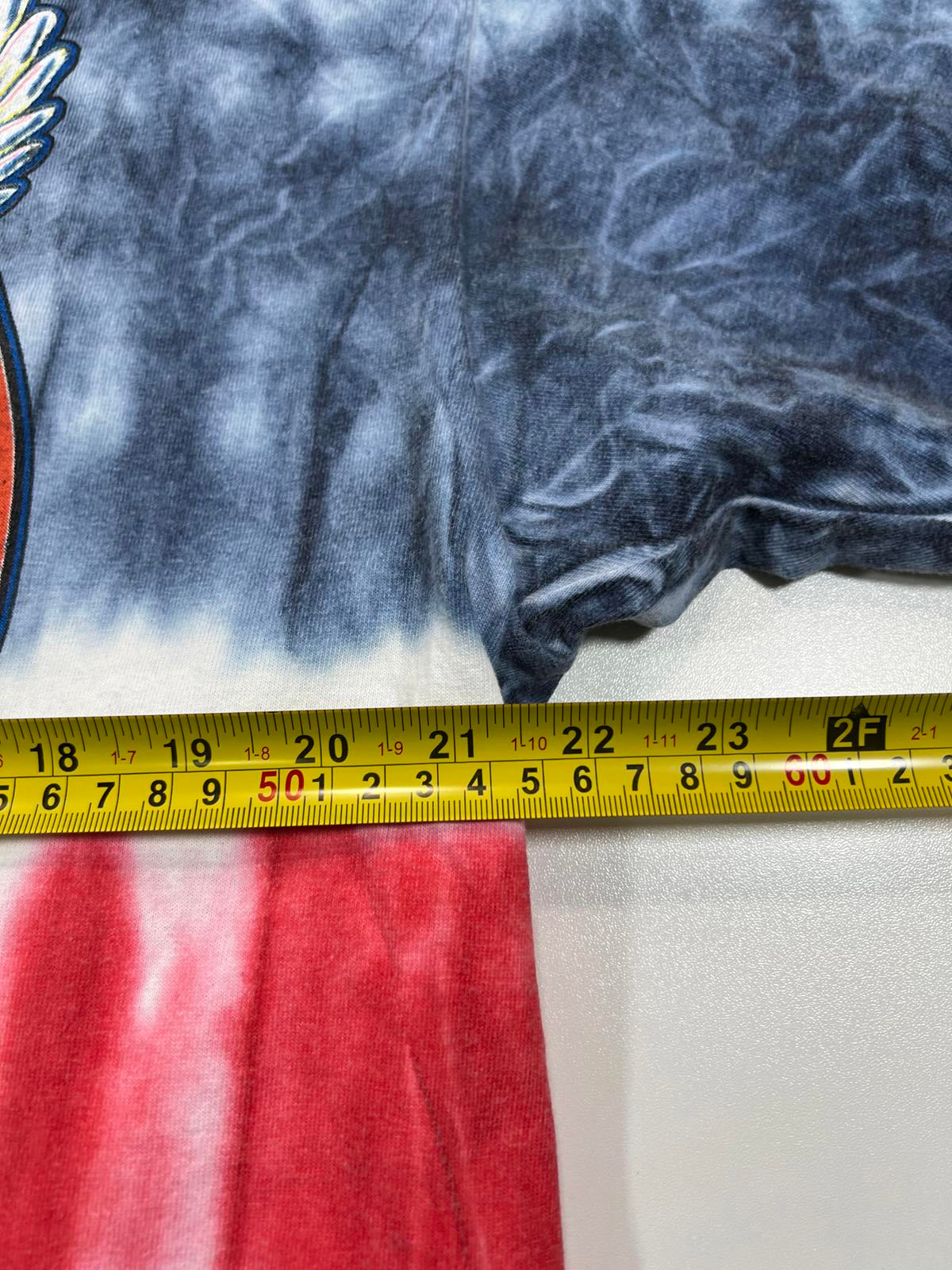 Classic tie-dye pattern in red, white, and blue.