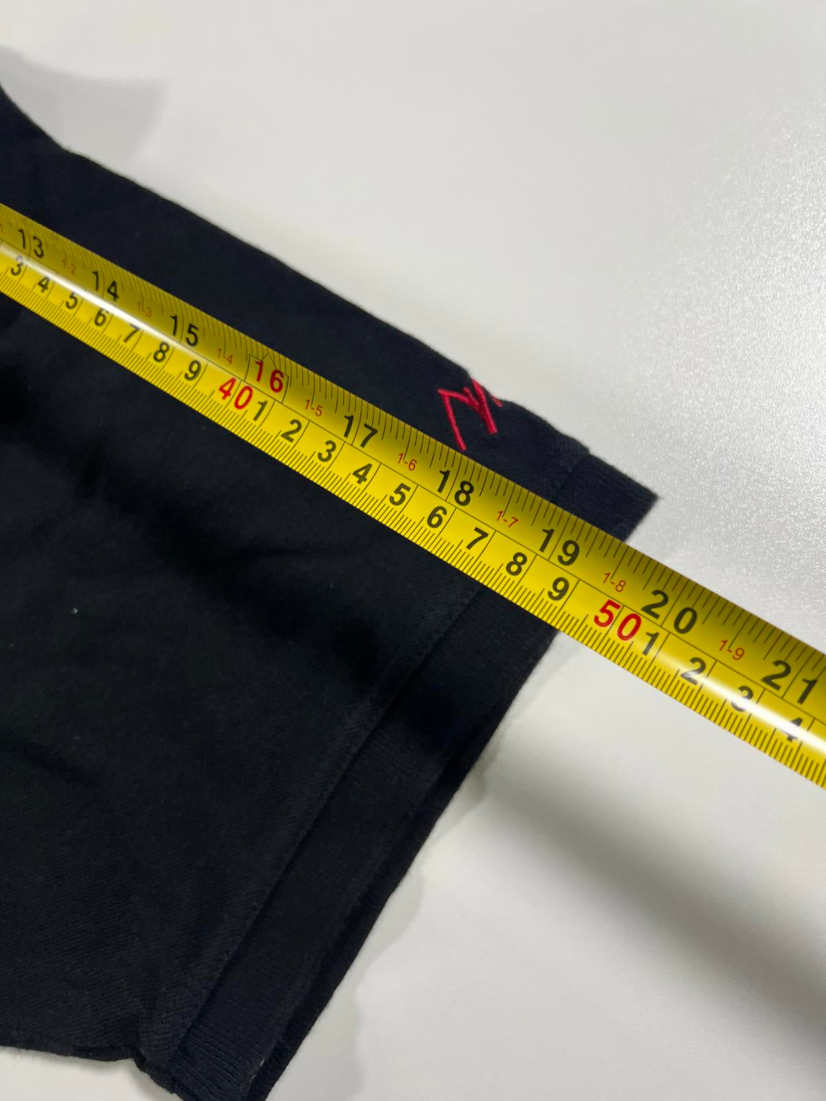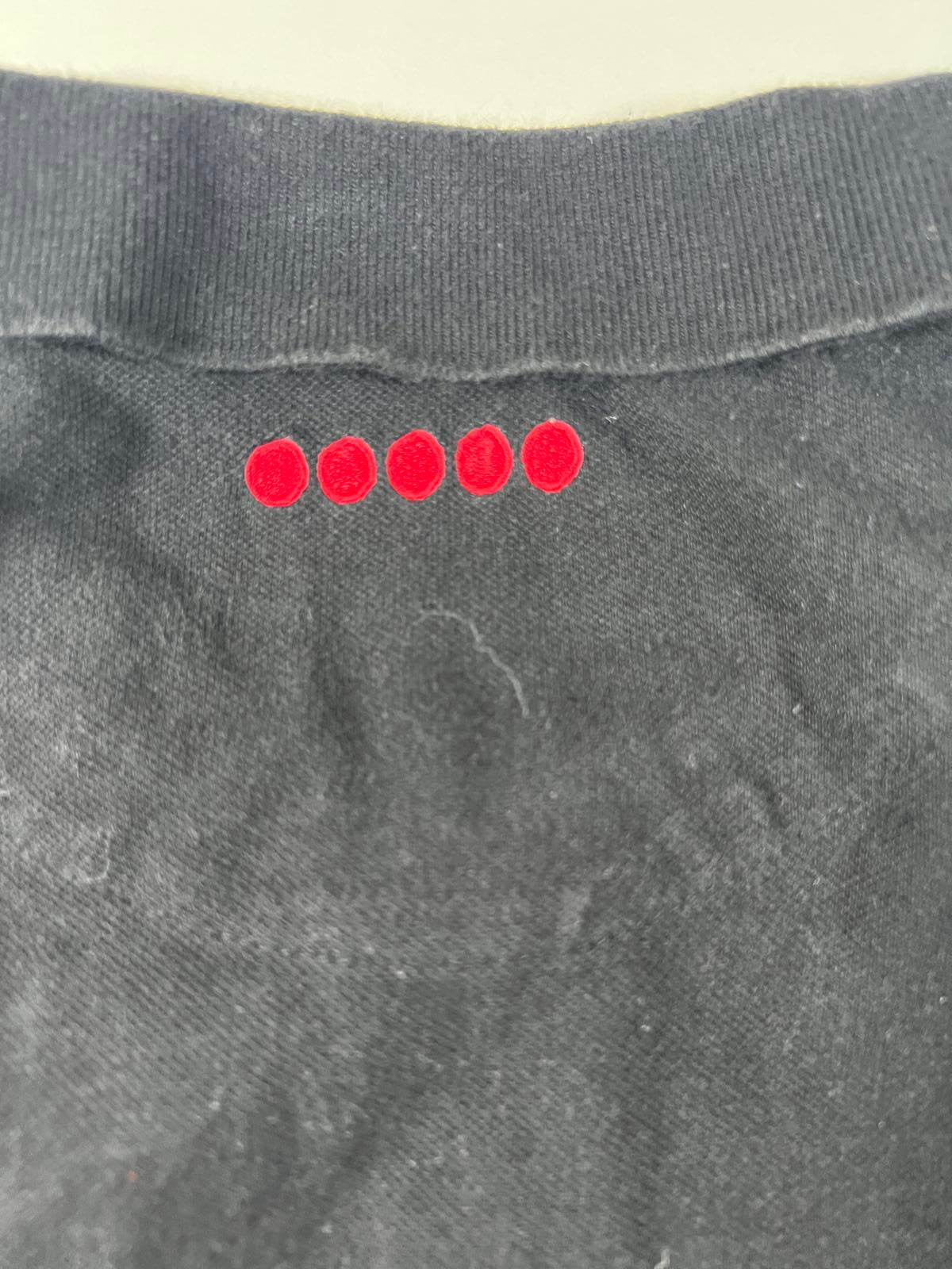 Black base colour with traditional collar and short sleeves.