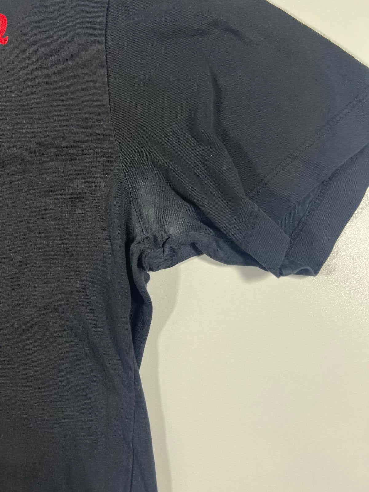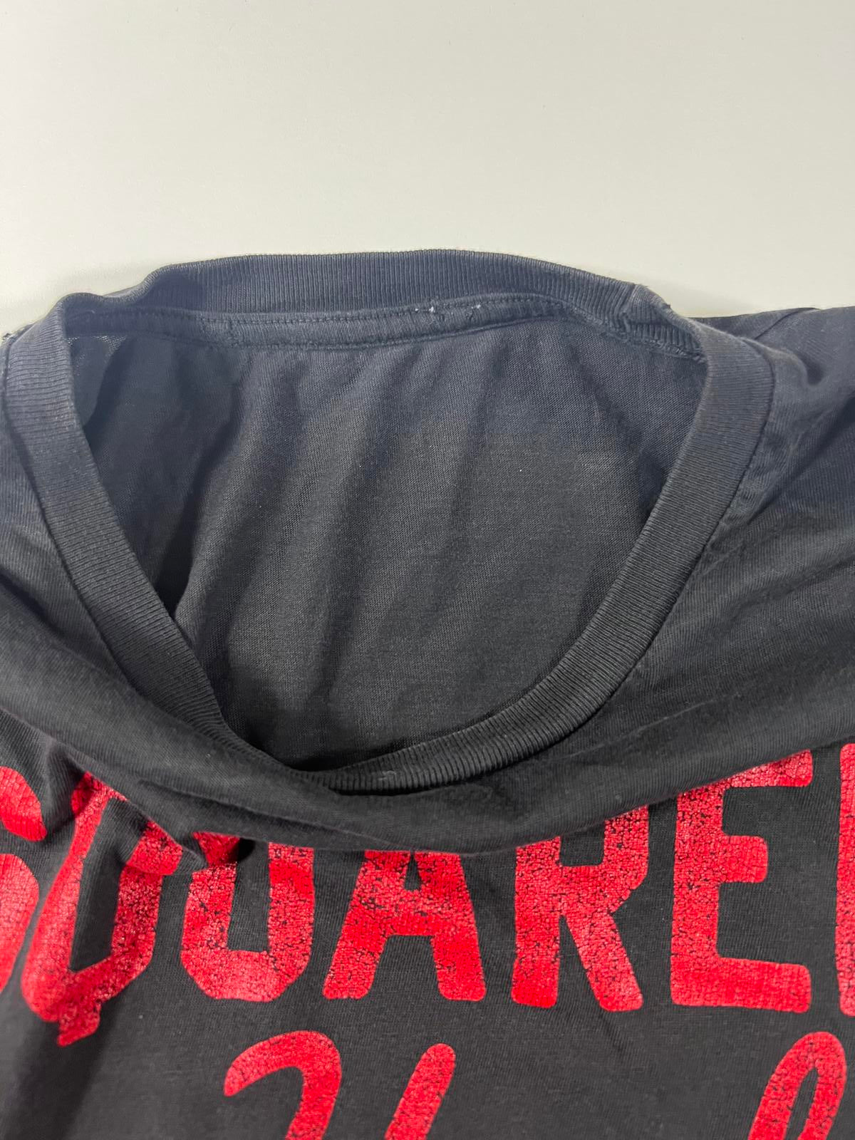 Black men's t-shirt featuring bold red graphic text "DSQUARED2 live Hard SINCE 1964" on the front.