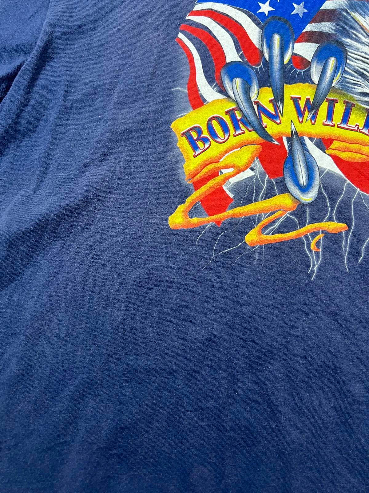 Men's short sleeve t-shirt featuring a bold Born Wild graphic with an eagle and American flag design.