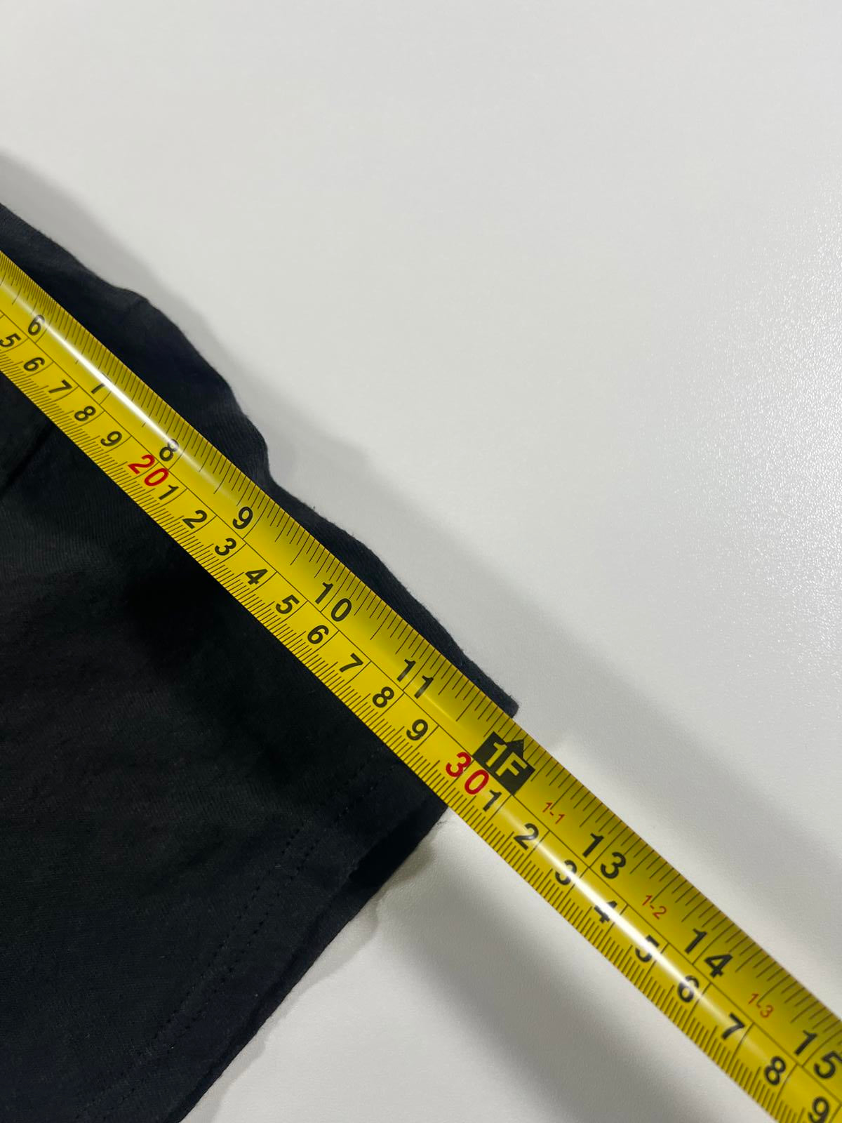 Black shirt with vibrant red and yellow design.
