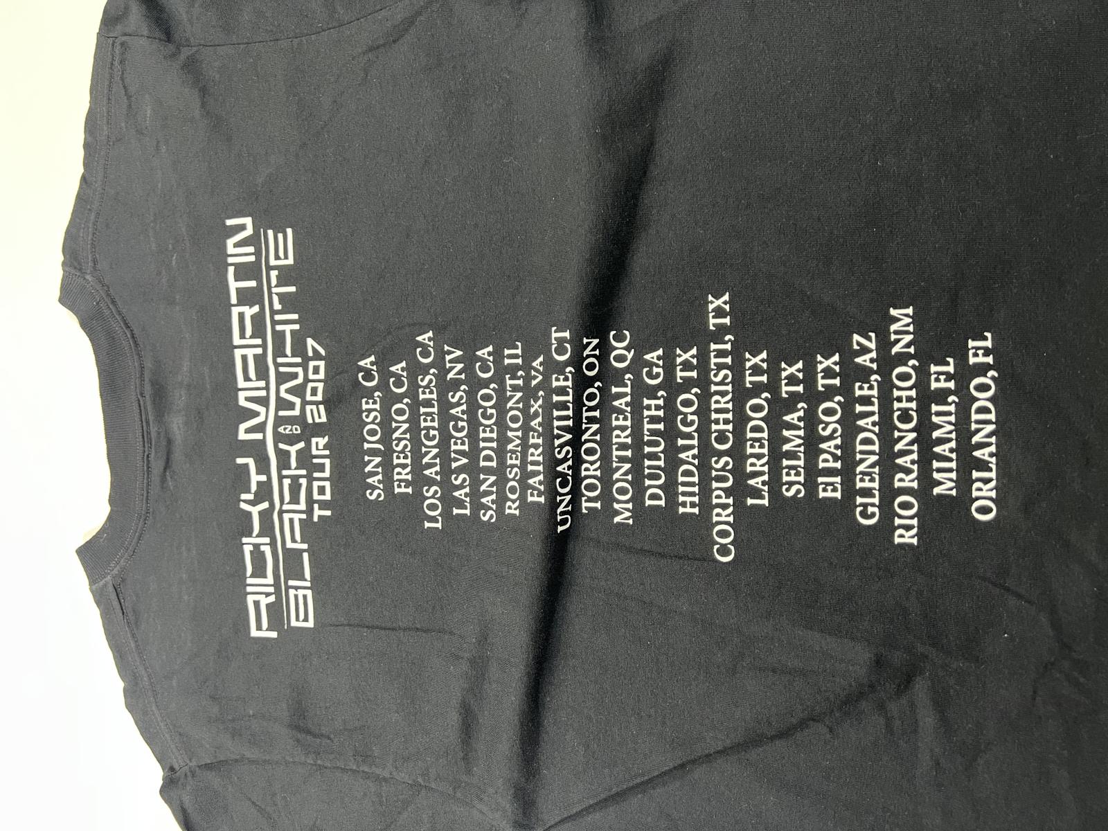 Black graphic T-shirt featuring a large print of Ricky Martin with text "Black and White Tour 2007".
