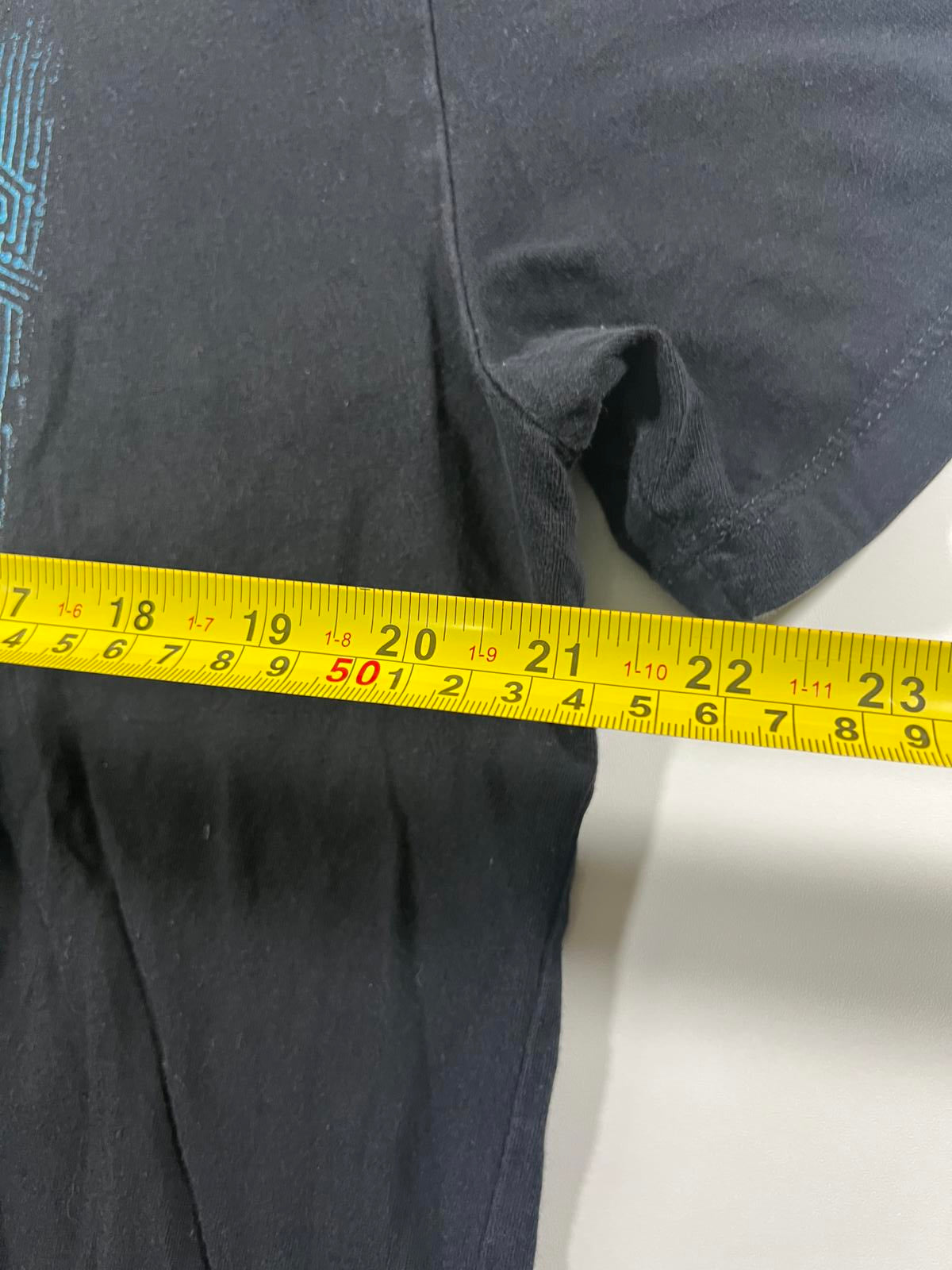 Mens black True Religion T-shirt with a large graphic on the front featuring the brand's signature logo and text.