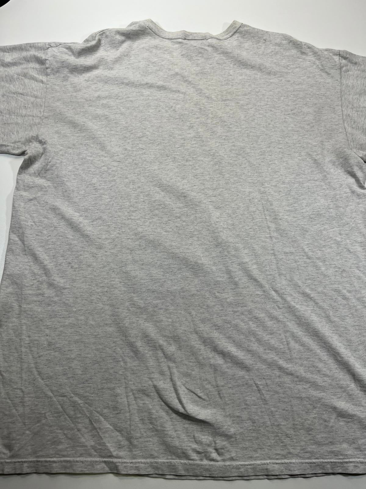 Grey t-shirt featuring a colorful graphic of a cartoon character holding a coffee cup with the text 'got coffee?'.