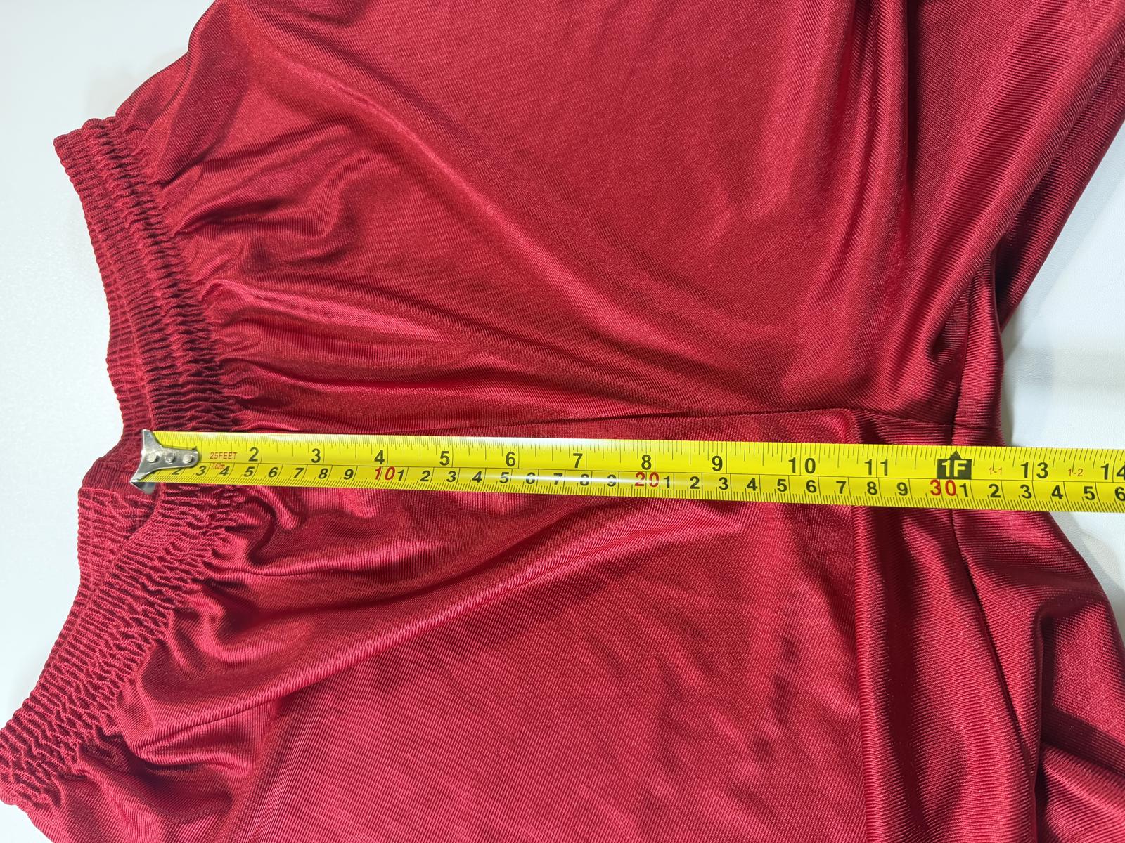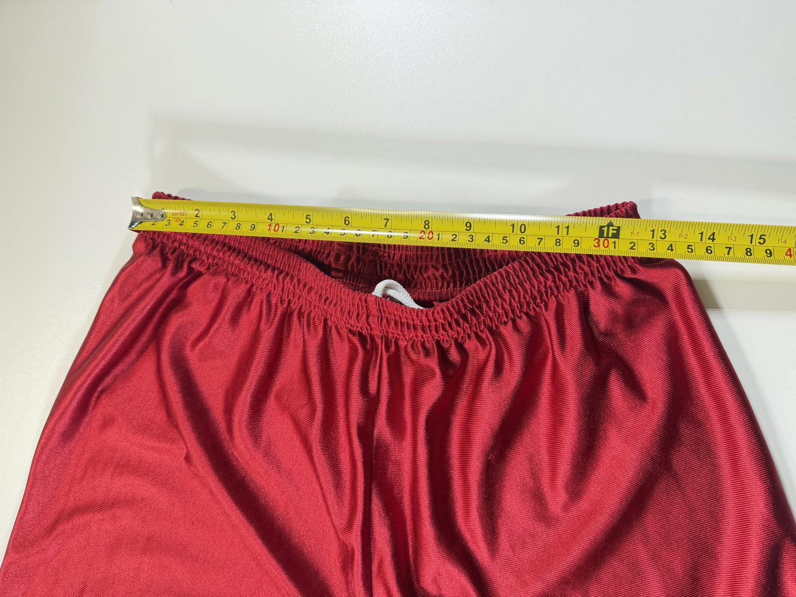 Red Adidas athletic shorts featuring an elastic waistband for a comfortable fit. Made from lightweight, breathable fabric ideal for sports and casual wear. The Adidas logo is embroidered on the left leg for a classic sporty look.