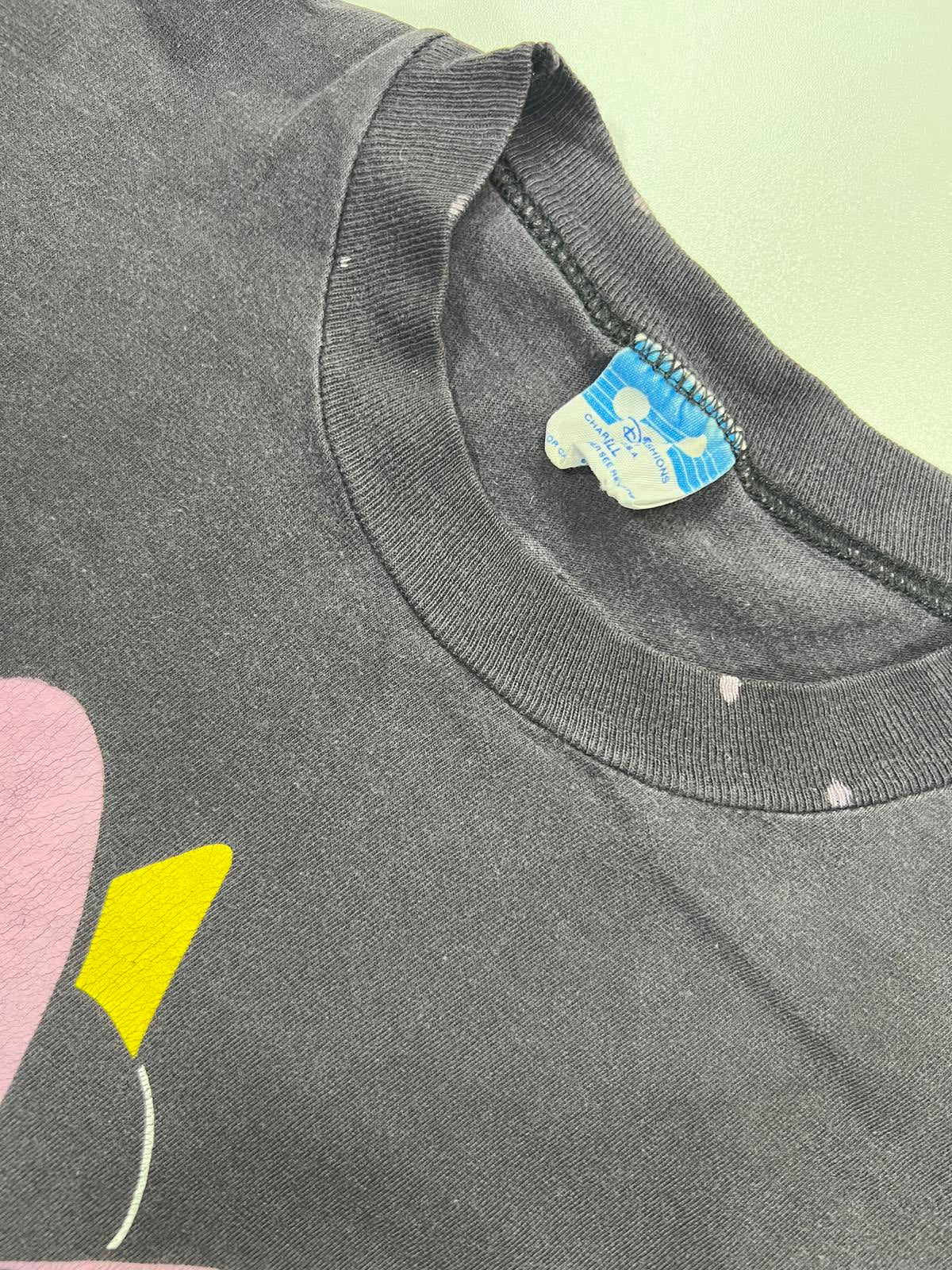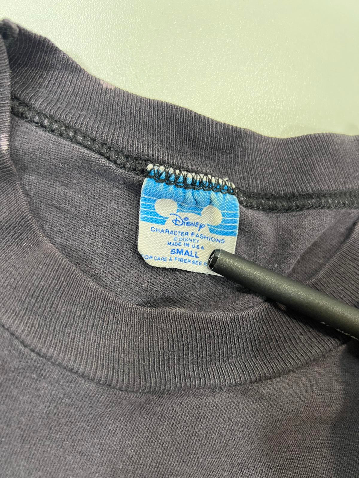 Vintage black T-shirt featuring a large graphic of Minnie Mouse with a pink bow and yellow star background.