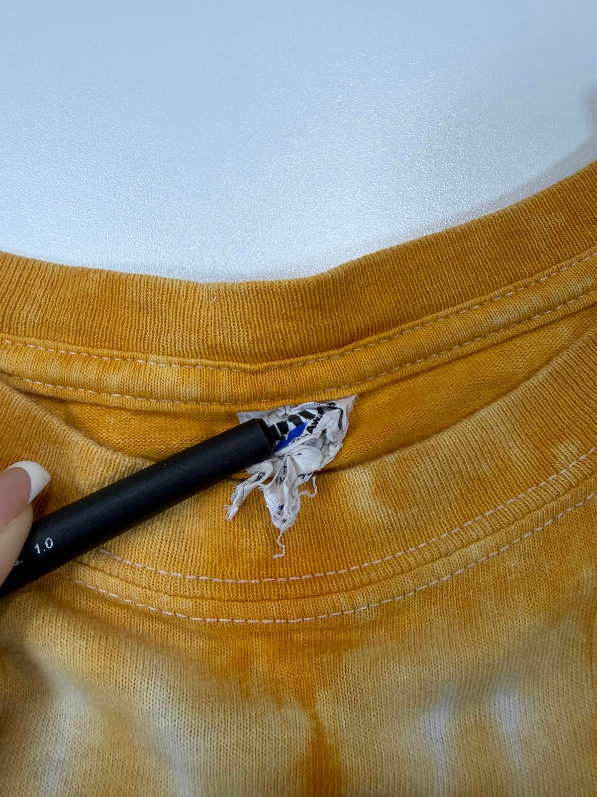 Tie-dye orange and white pattern.