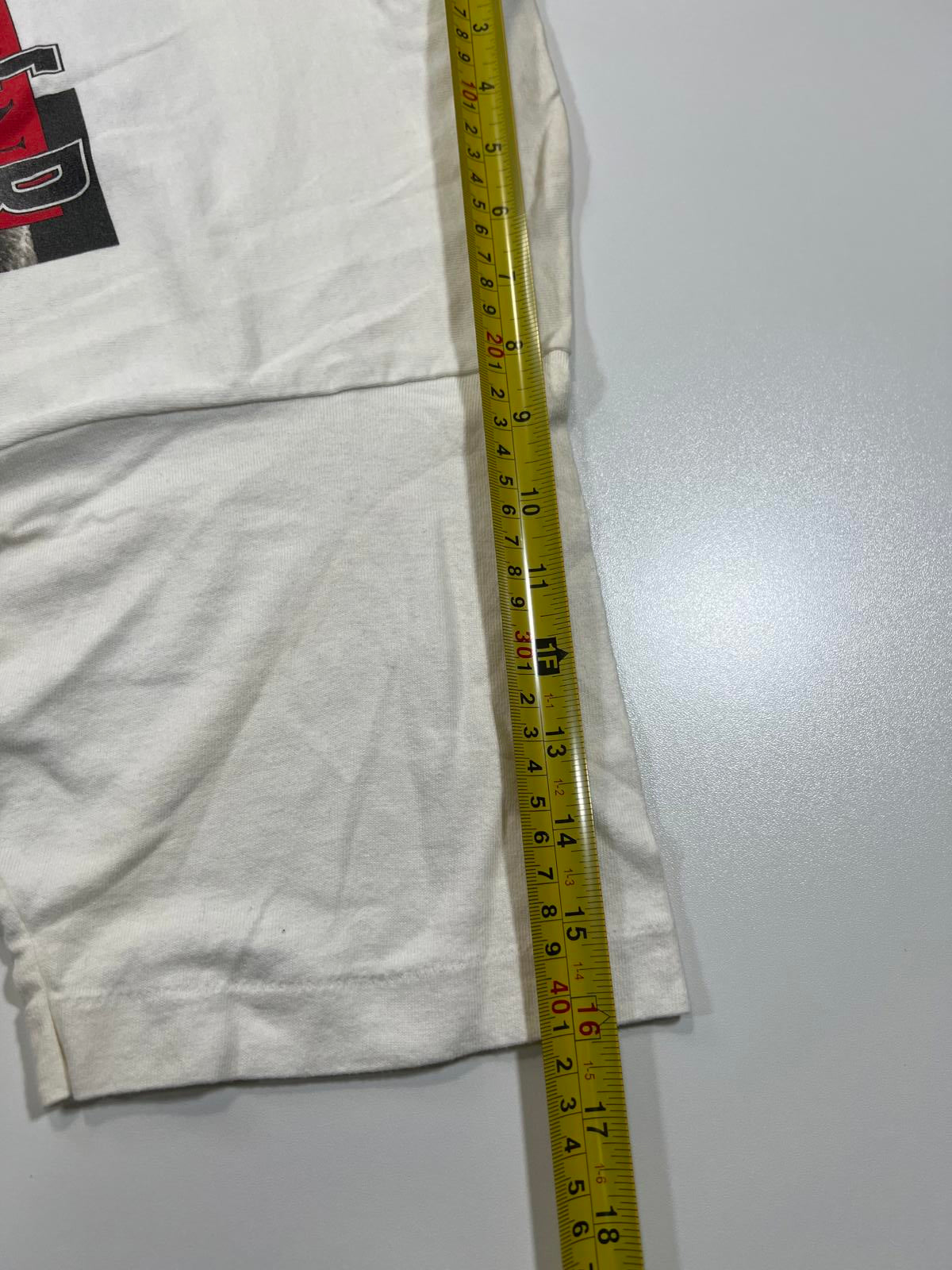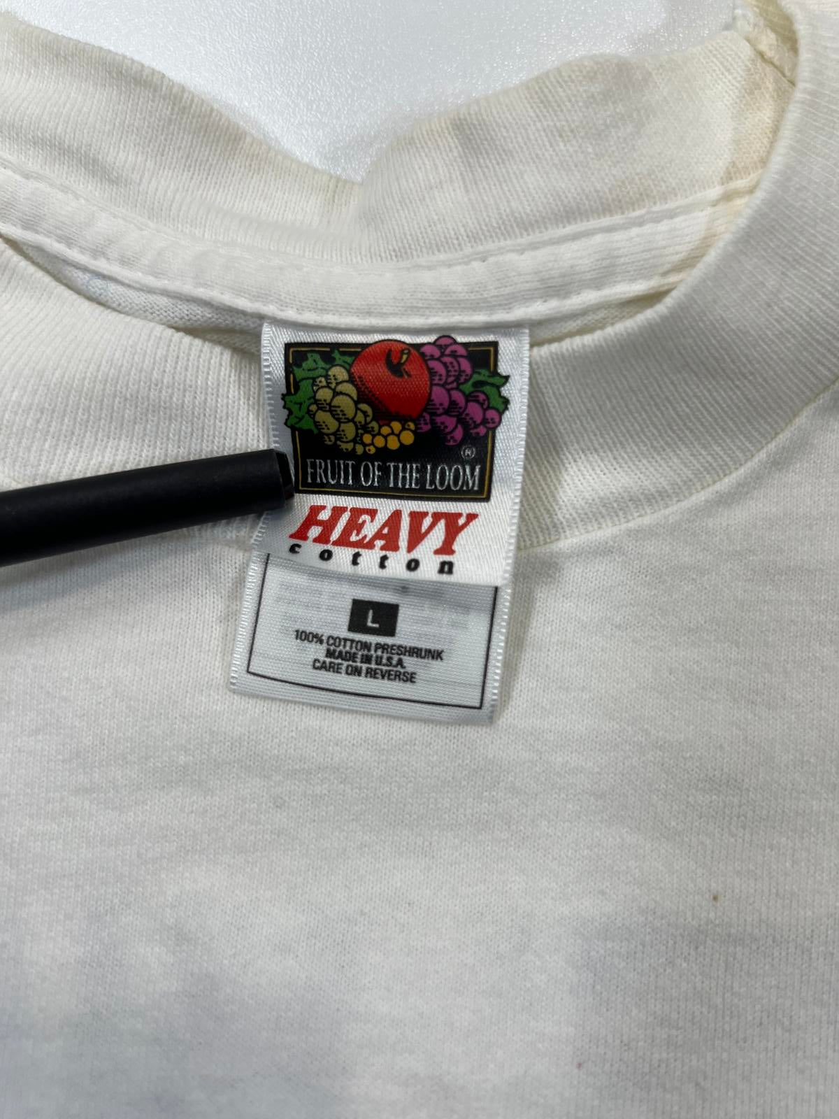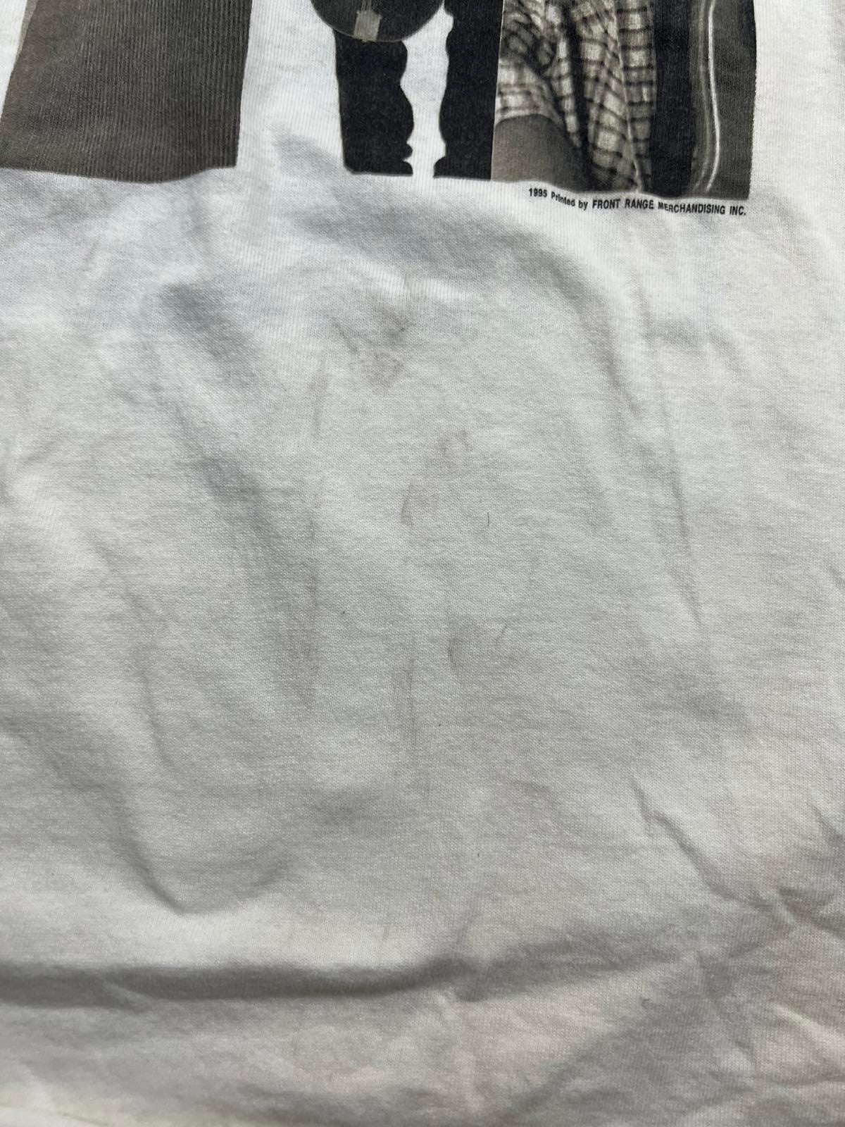 Vintage white Starpower band graphic T-shirt featuring black and white images of the band members with red lettering.