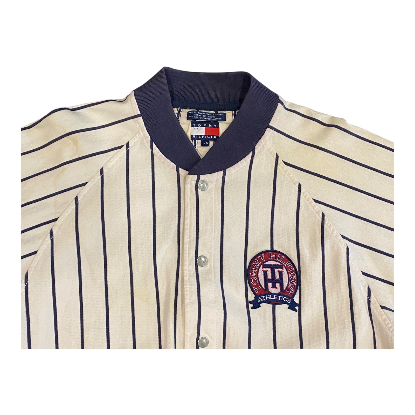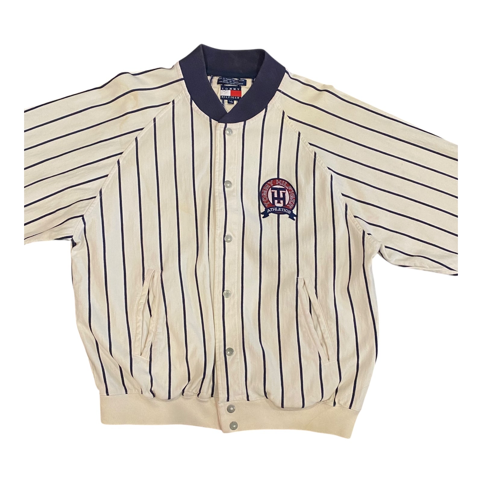 90s Tommy Hilfiger pinstripe button up bomber jacket
