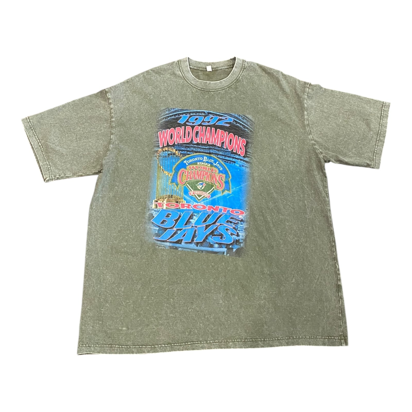 Custom Streetcvlture Blue Jays Championship Graphic shirt printed on Acid Wash