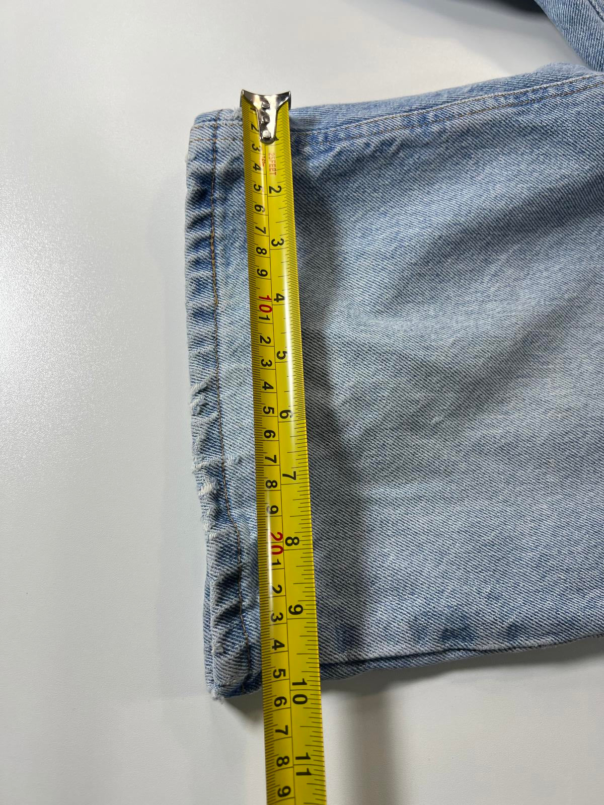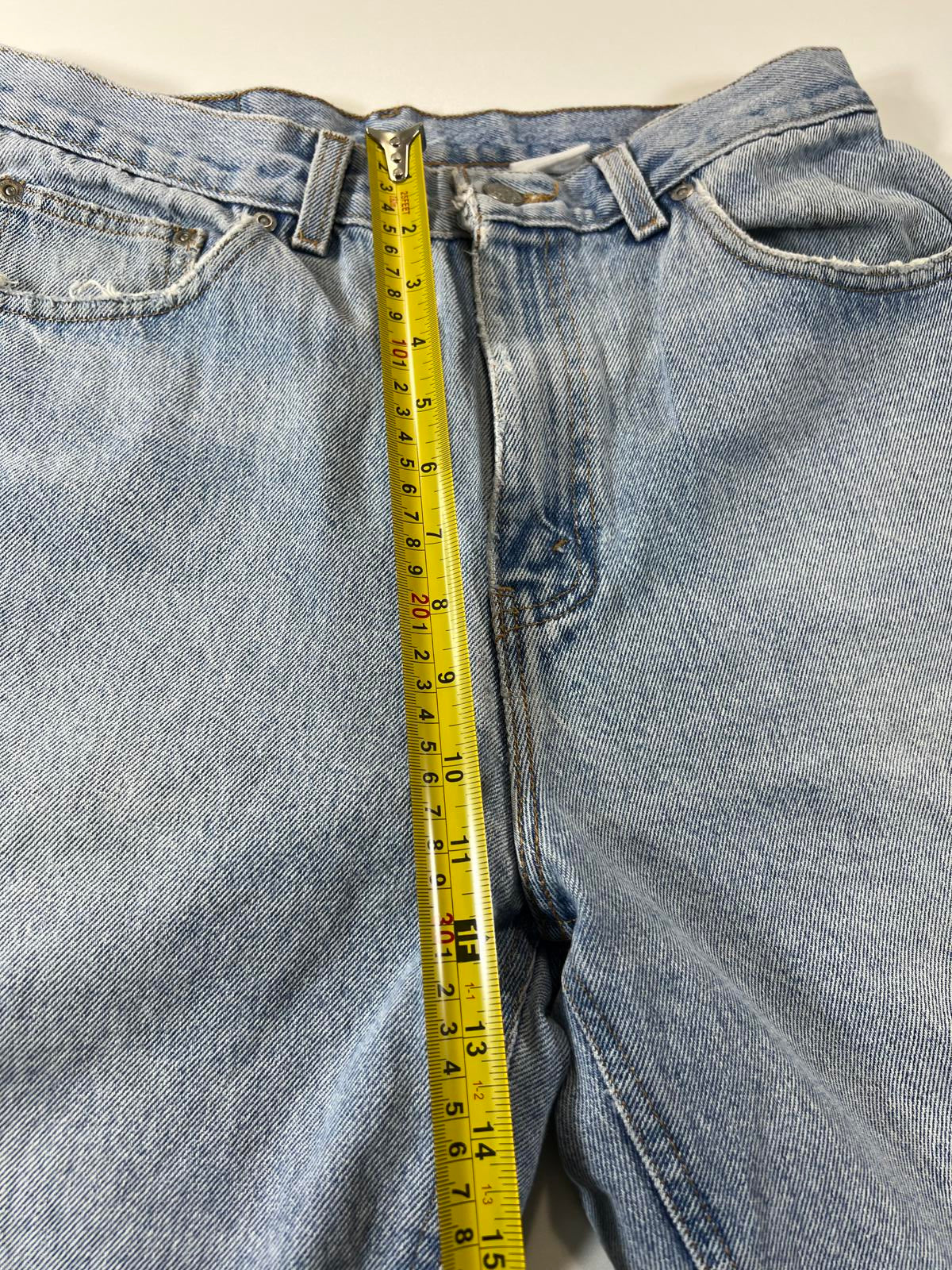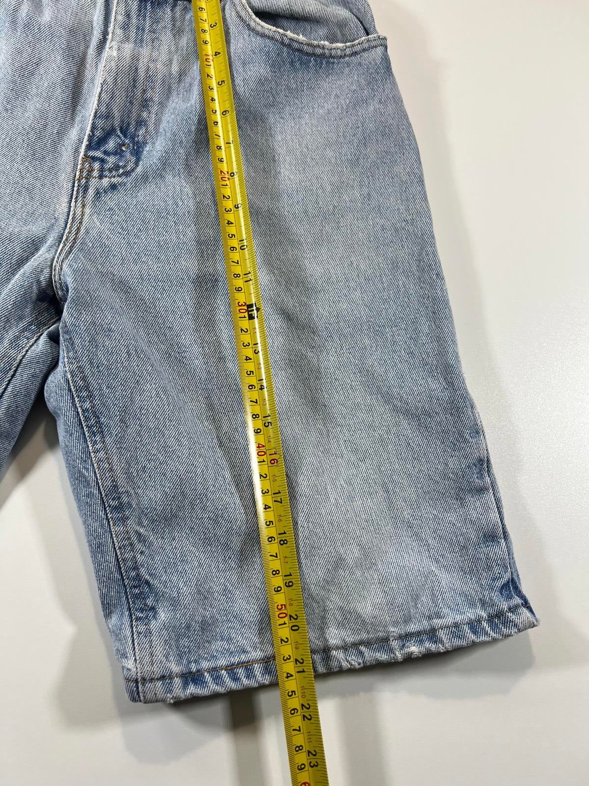Classic light blue denim shorts with a relaxed fit. Features front and back pockets, belt loops, and a button closure. Made from durable denim fabric, perfect for casual wear