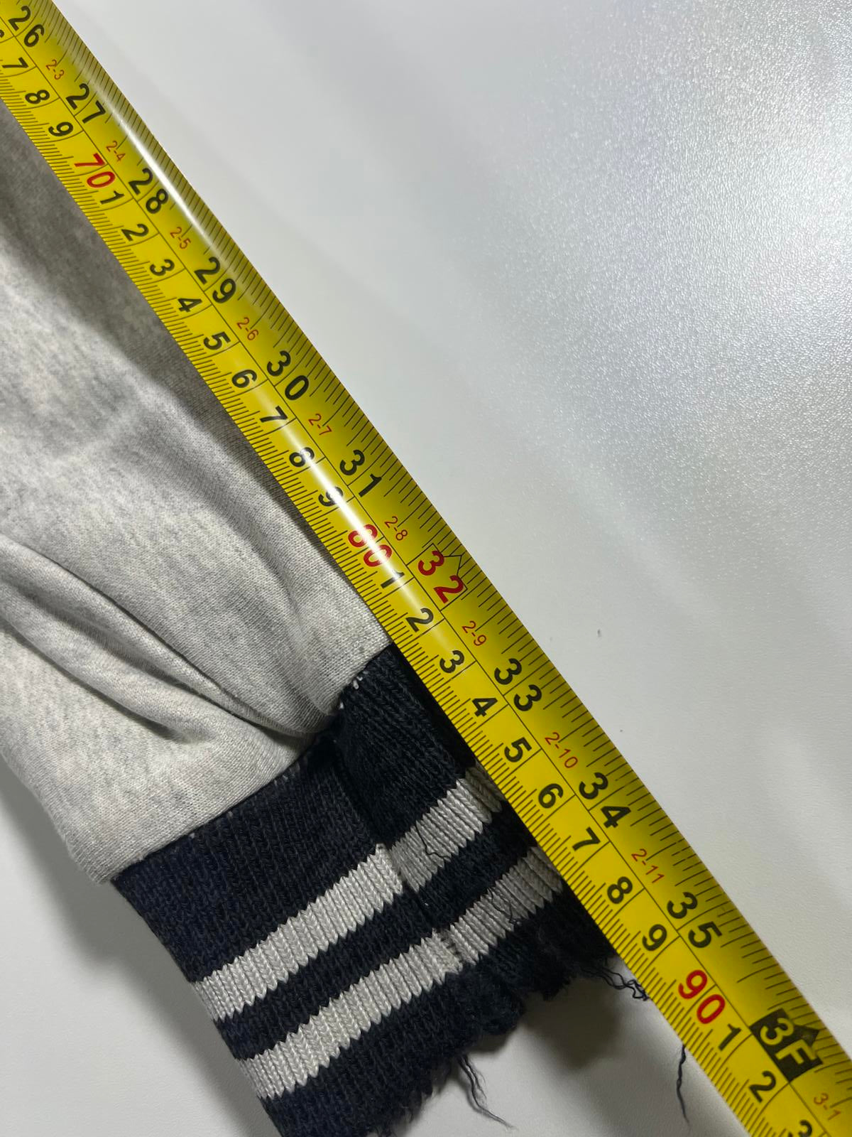 Ribbed cuffs and hem with contrasting stripes for added style.
