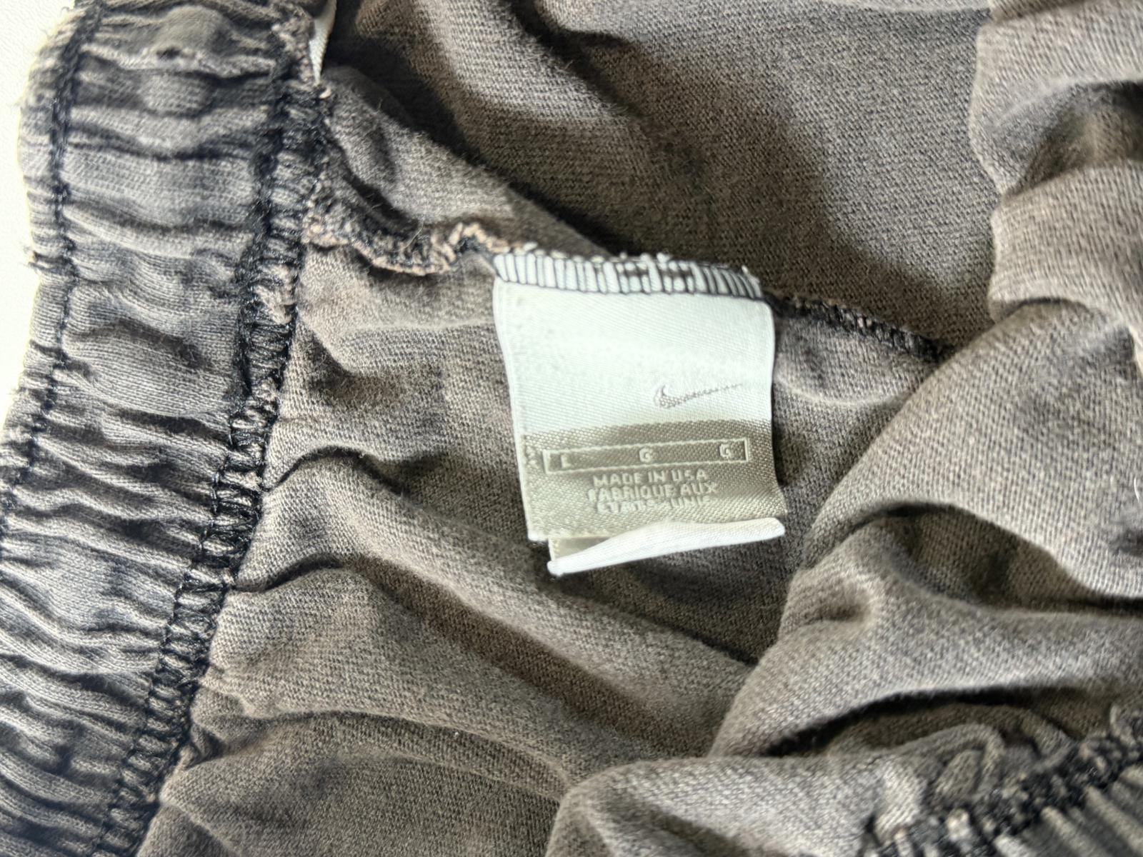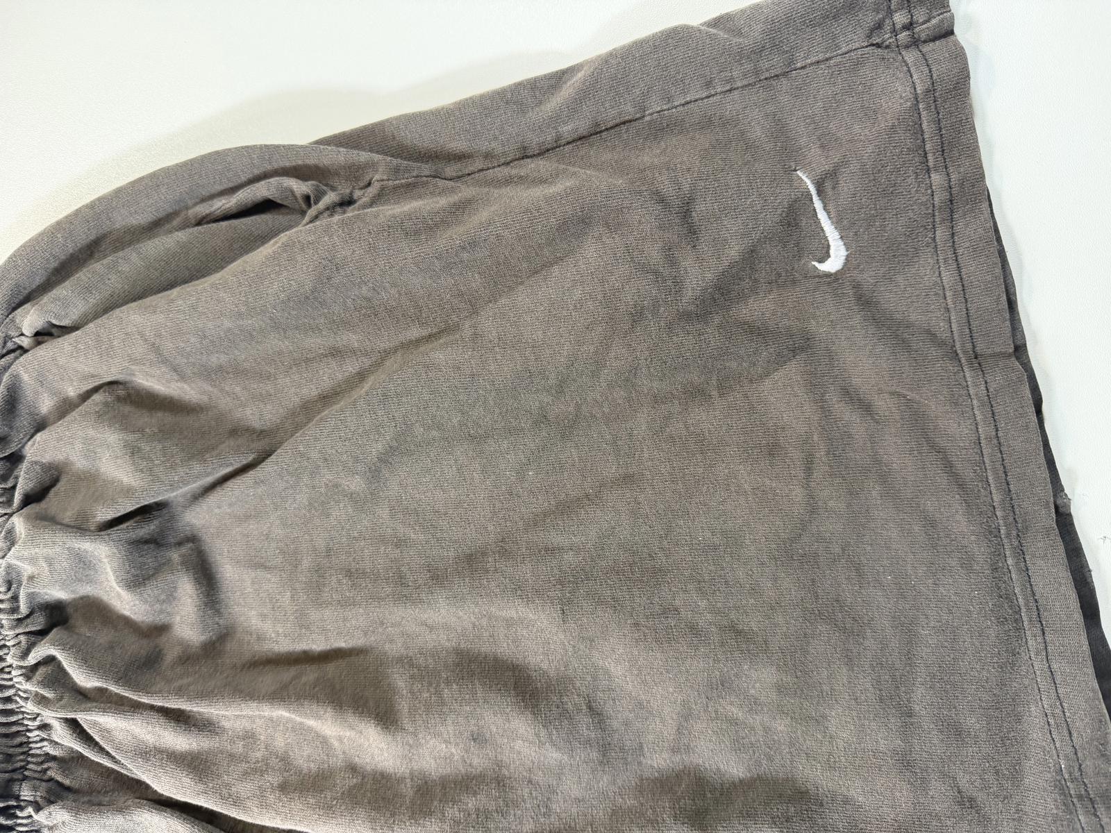 Comfortable Nike athletic shorts in faded black with an elastic waistband for a secure fit. Features the iconic Nike swoosh logo on the hem. Suitable for casual wear or sports activities. Please note some signs of wear consistent with previous use.
