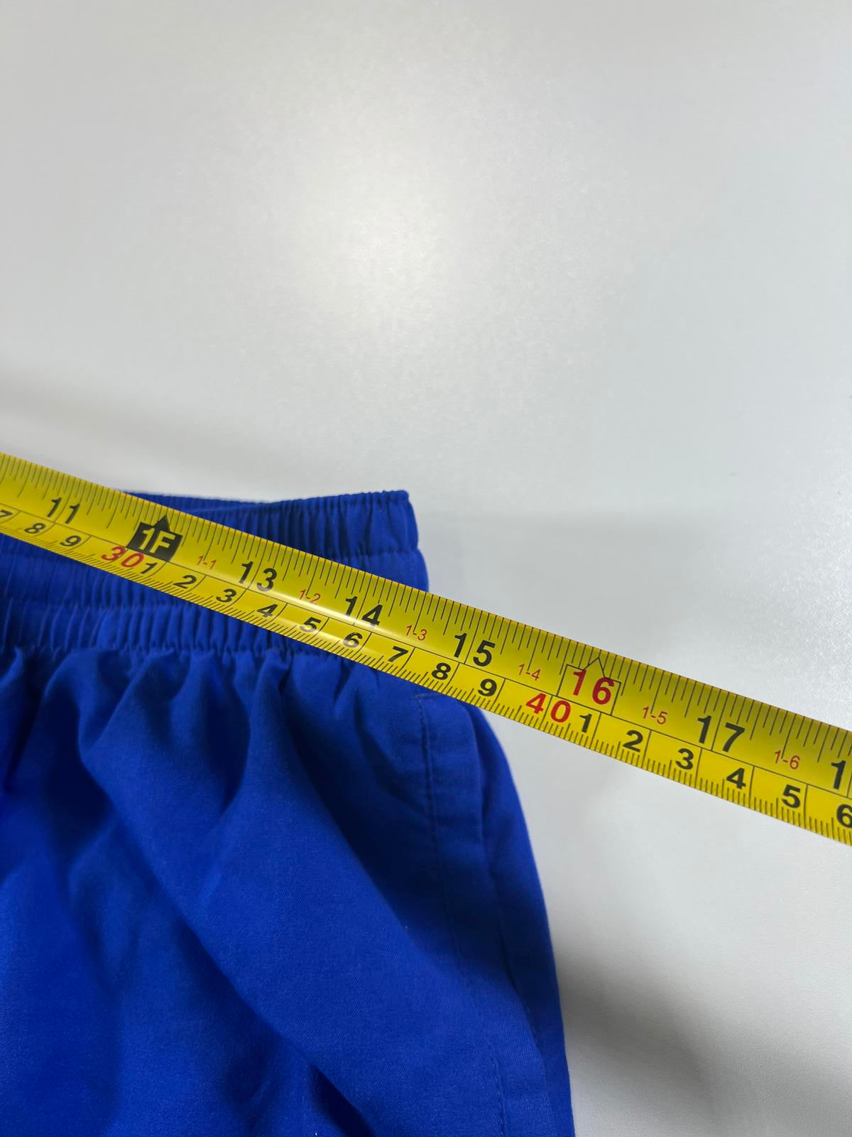 Men's athletic shorts by Nike featuring a vibrant blue and turquoise colourblock design. Elastic waistband for a comfortable fit. Lightweight and breathable fabric ideal for sports and casual wear. Nike swoosh logo on the lower leg adds a sporty touch.