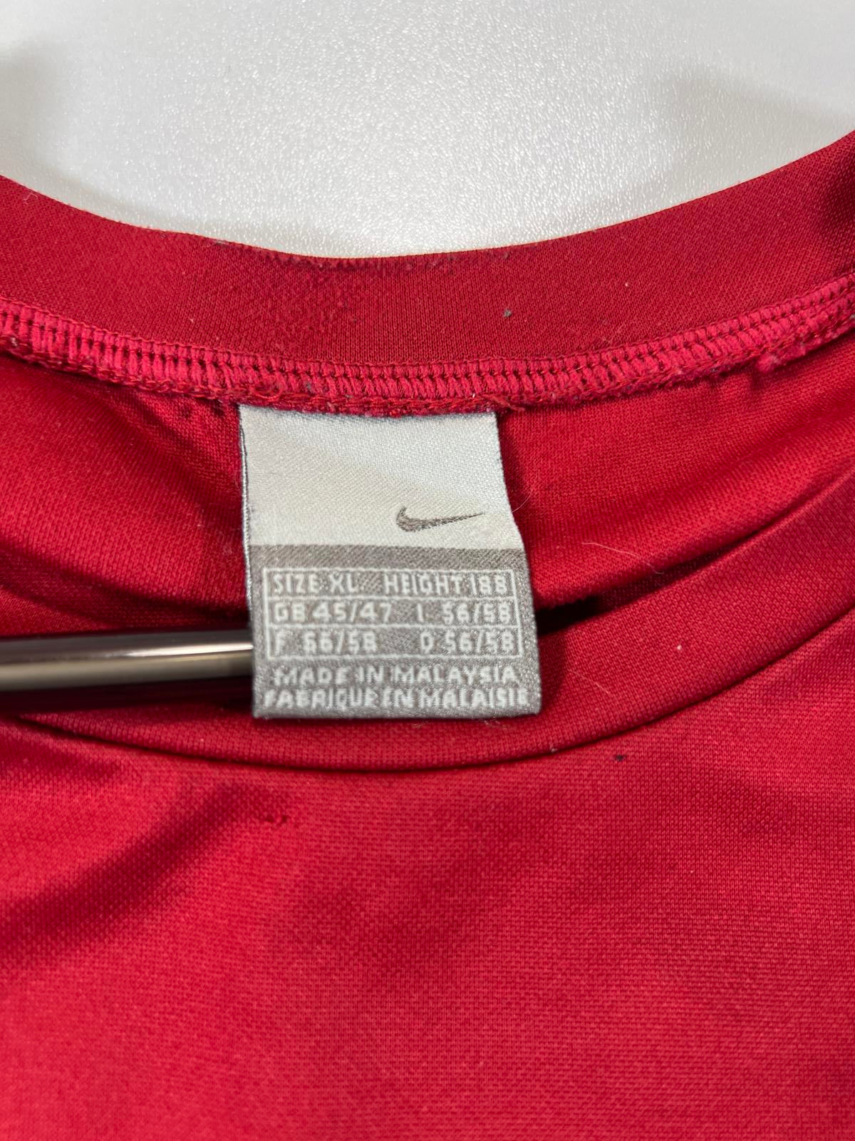 Nike short sleeve performance t-shirt in red. Features a small white Nike swoosh logo on the chest. Made from moisture-wicking fabric ideal for sports and casual wear. Comfortable fit with crew neckline.