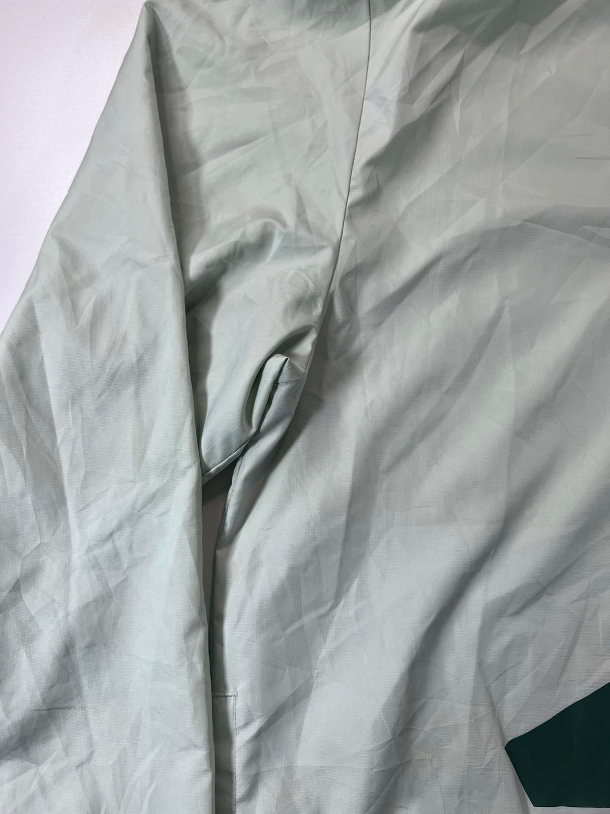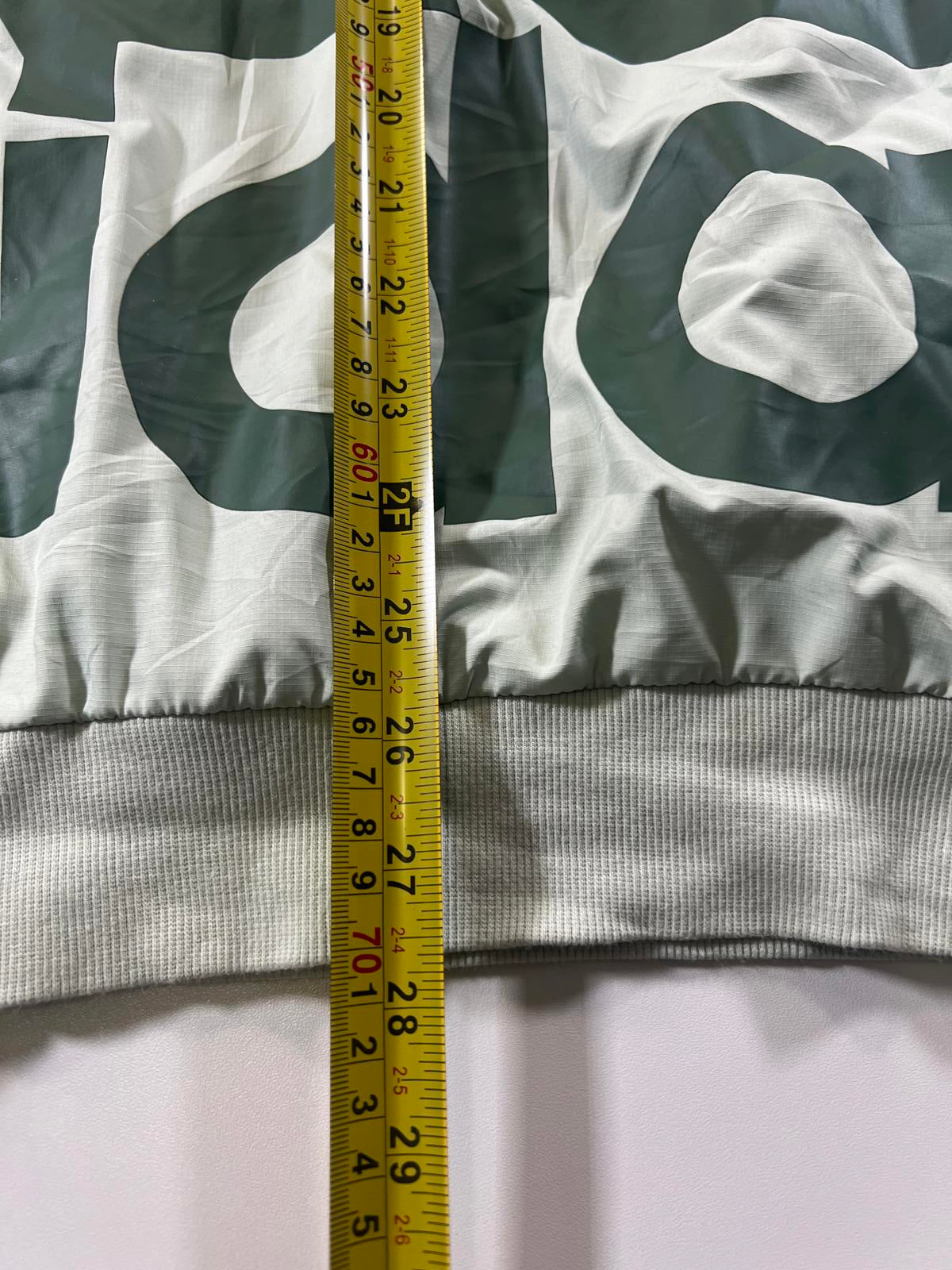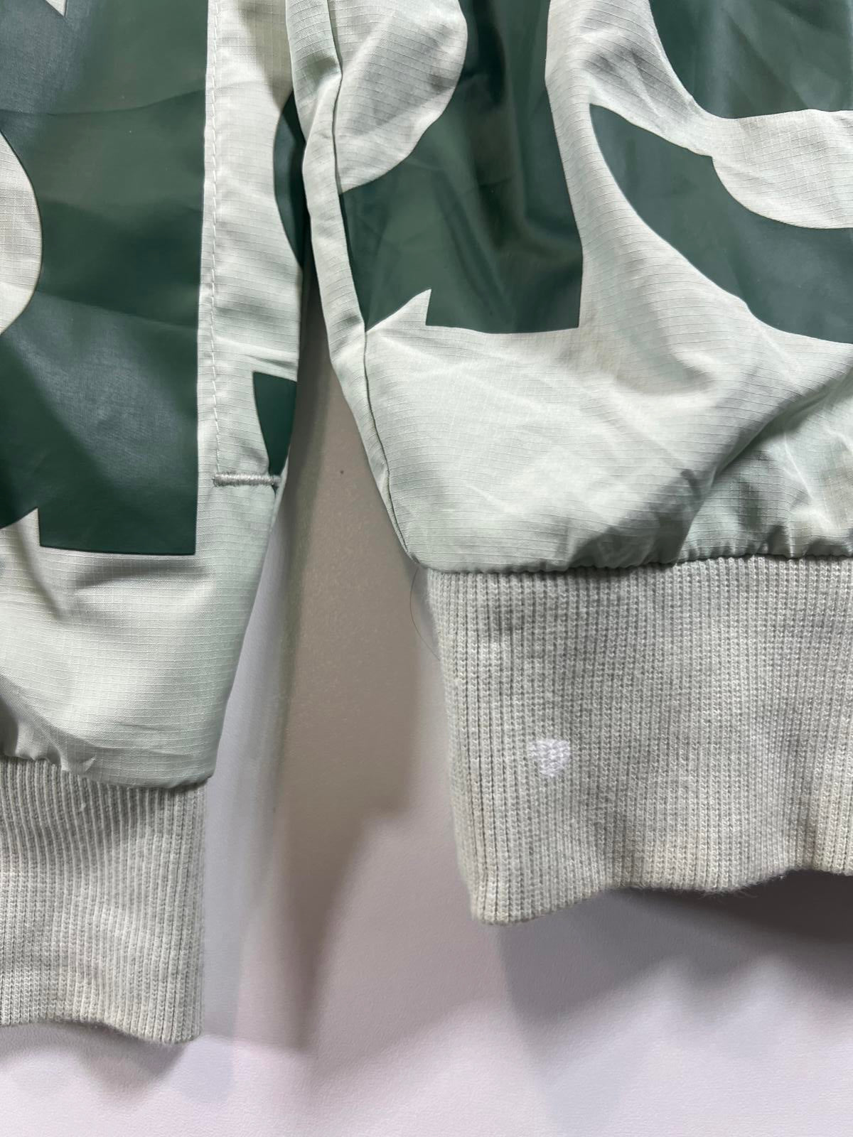 Lightweight Adidas jacket featuring a full front zipper and large Adidas logo print. Ribbed cuffs and hem provide a snug fit. Ideal for casual wear or light exercise.