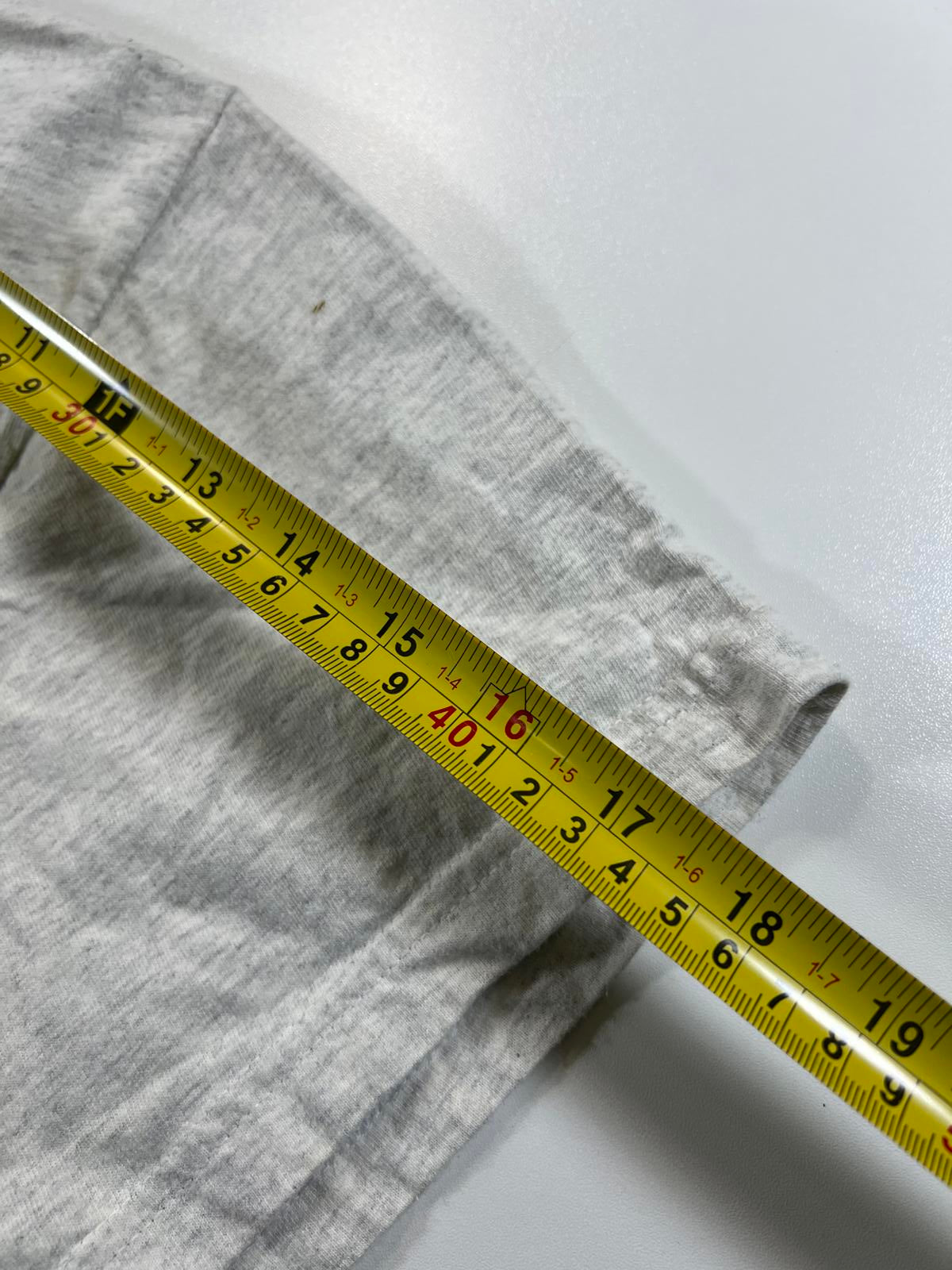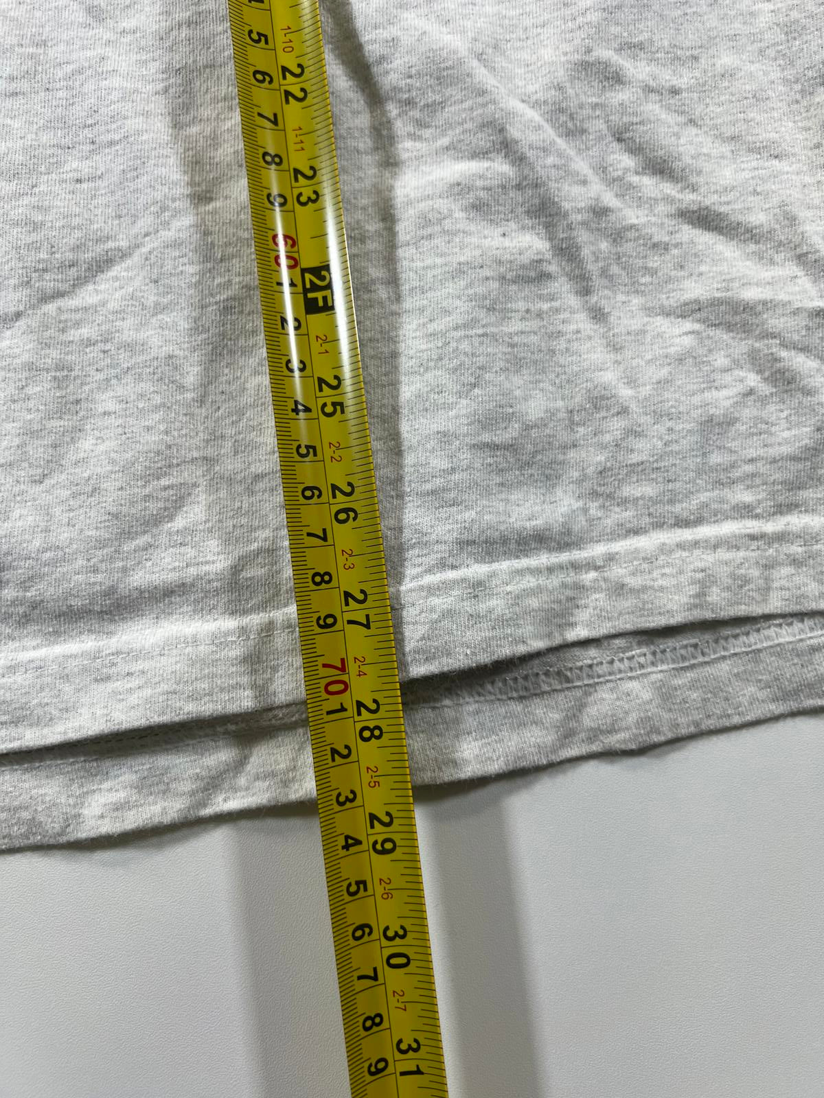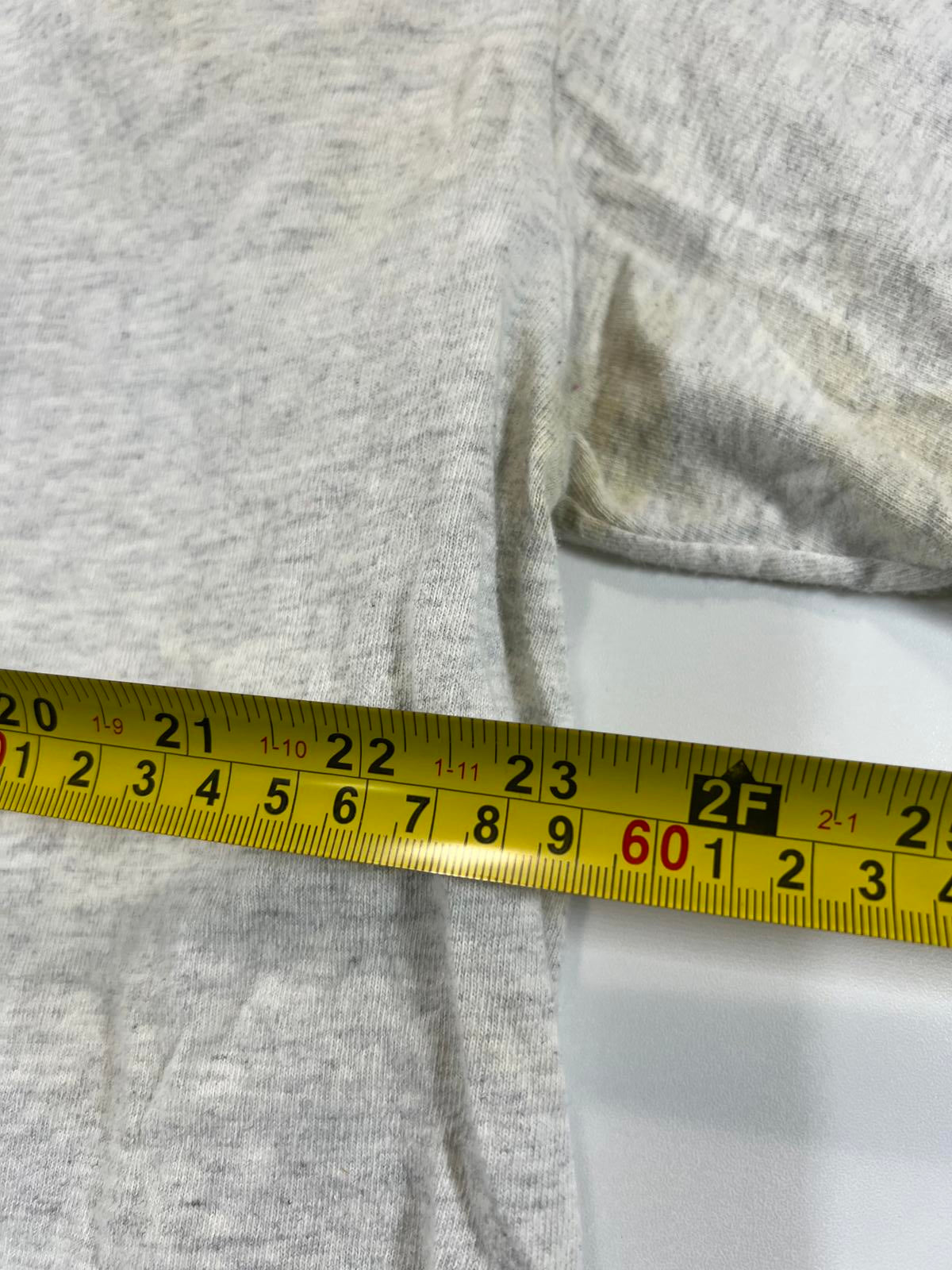 Vintage grey t-shirt featuring a colourful graphic of Mickey and Minnie Mouse with flowers and hearts. Classic crew neck and short sleeves. Soft fabric with slight signs of wear, adding to its vintage charm. Perfect for Disney fans and casual wear.