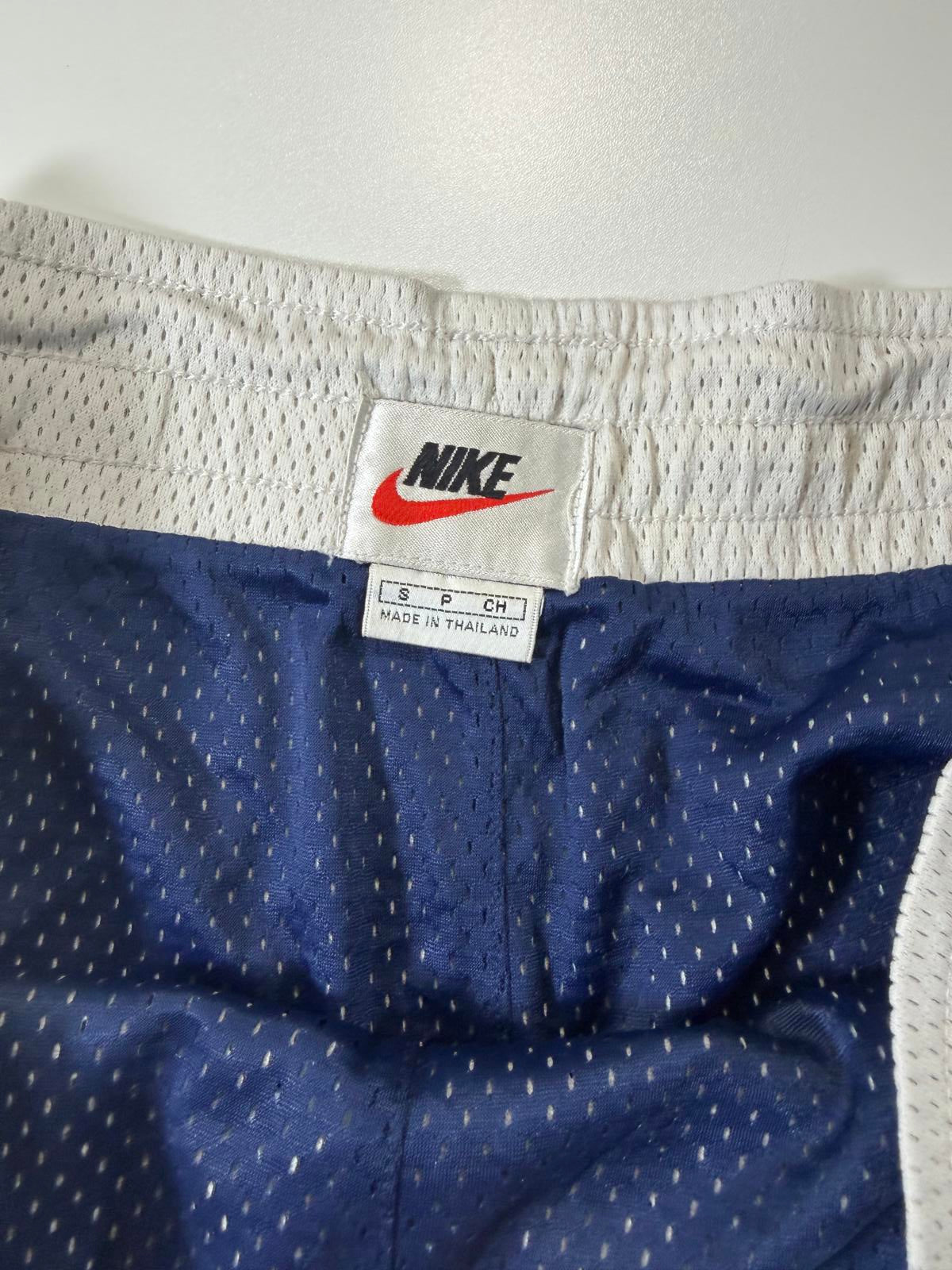 Vintage Nike White Mesh Athletic Shorts with Basketball Logo
