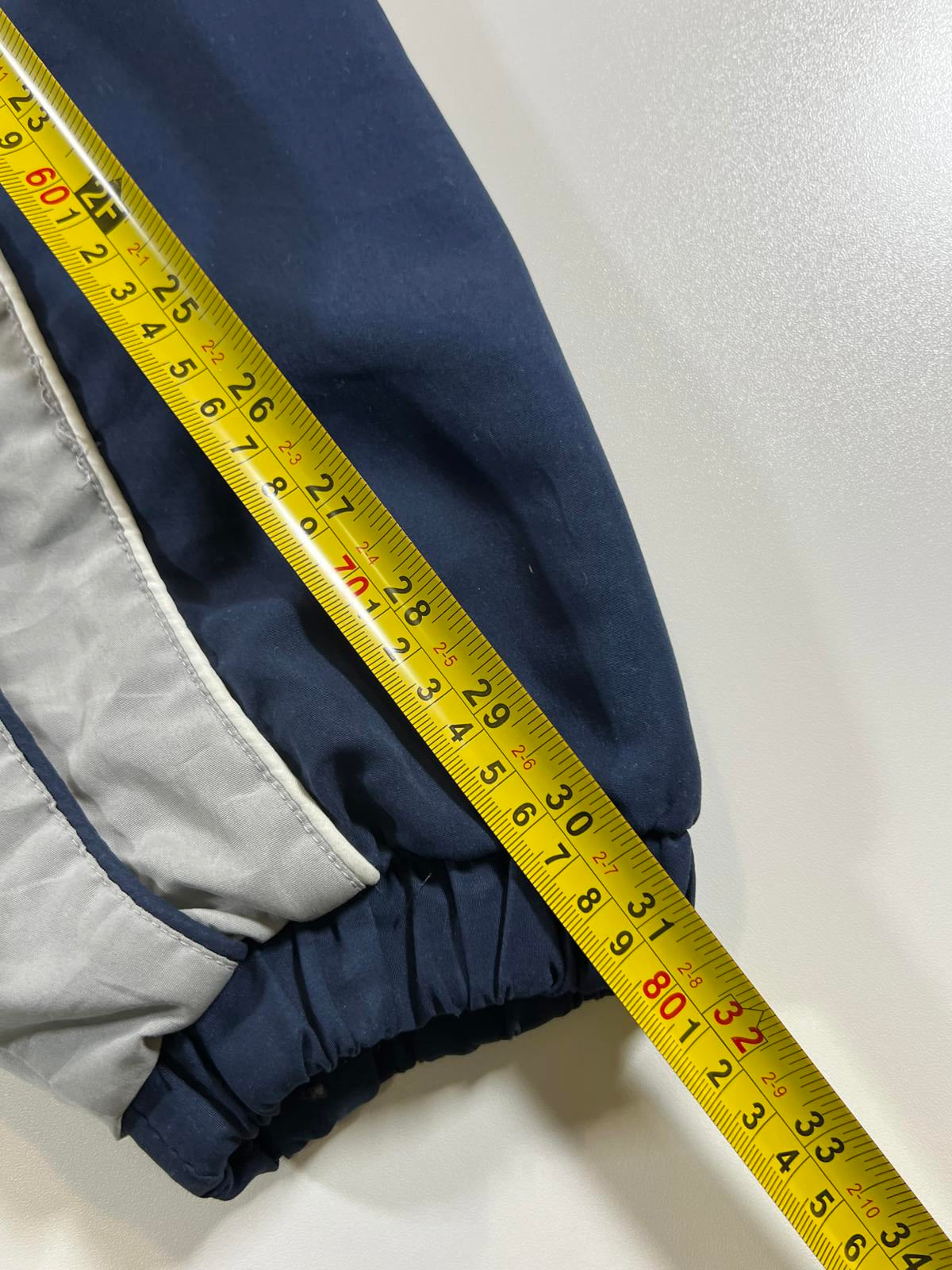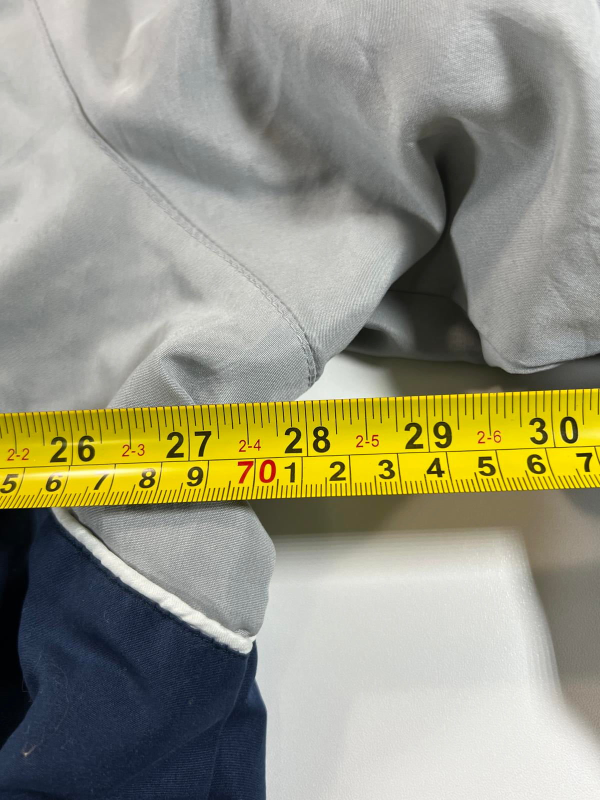 This 58 Sports pullover jacket features the Penn State logo on the chest. It has a two-tone design in grey and navy blue with striped ribbed collar and elastic hem for a comfortable fit. Made in China, size XXL. Perfect for casual wear or showing team spirit.